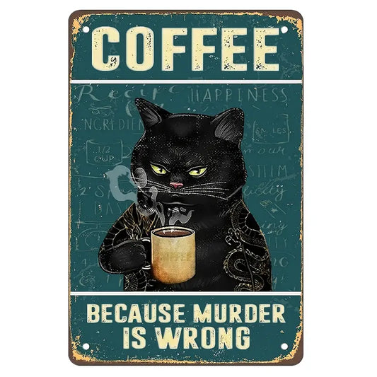 Vintage Cat Metal Sign (8" X 12") for Home Decor