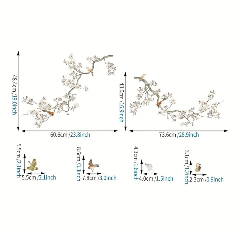 Transform your living space into a vibrant haven with our Removable Colorful Wall Stickers. Featuring delightful designs of birds, magnolia branches, and flowers, these stickers are perfect for adding a touch of nature to any room. Measuring at 57cm x 30cm and coming in a set of 3 pieces, they are designed to be both eye-catching and versatile.