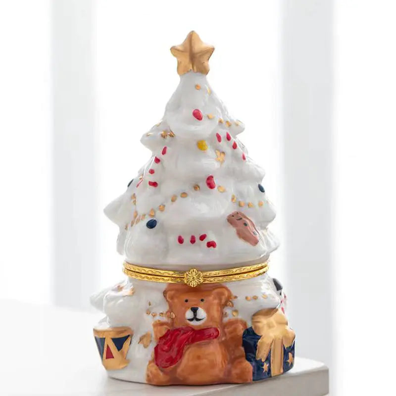 Elevate your home decor with our exquisite Handmade Porcelain Jewelry Box, perfect for storing your treasured accessories or adding a touch of elegance to your living space. Crafted from high-quality white porcelain, each piece is meticulously handmade to ensure uniqueness and charm. This decorative storage box features stunning painted surface technology that enhances its visual appeal, making it an ideal gift for special occasions such as Christmas or housewarming parties. Whether you choose the Green Christmas Tree or the White Christmas Tree design, this box will surely impress your guests and add a festive spirit to your home. The dimensions are perfectly designed to fit in any space, weighing just 0.53 kg. Use it to store jewelry, trinkets, or simply as an eye-catching centerpiece on your table or shelf.