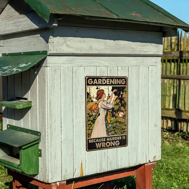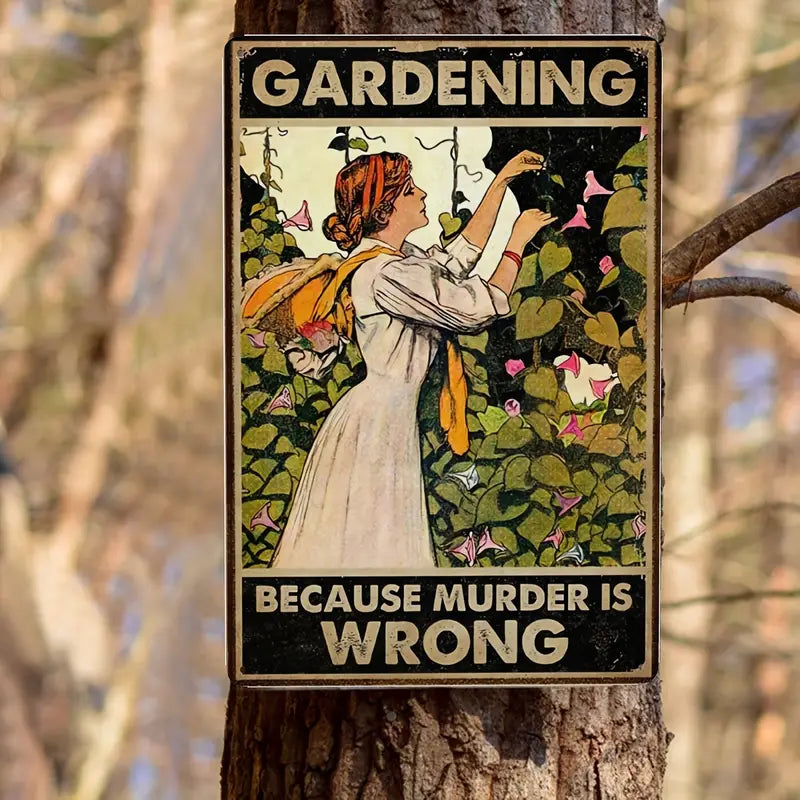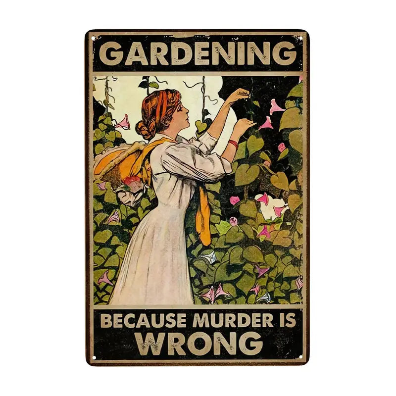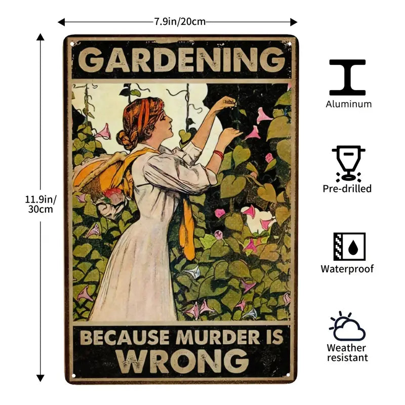 Bring a touch of humor and charm to your space with our Aluminum Metal Sign Decor. This vintage-style sign features a witty phrase, "Gardening Because Murder Is Wrong," adding a playful twist to your home, cafe, bar, or restaurant. Its retro design is perfect for anyone who appreciates a good laugh while enjoying their favorite hobby.