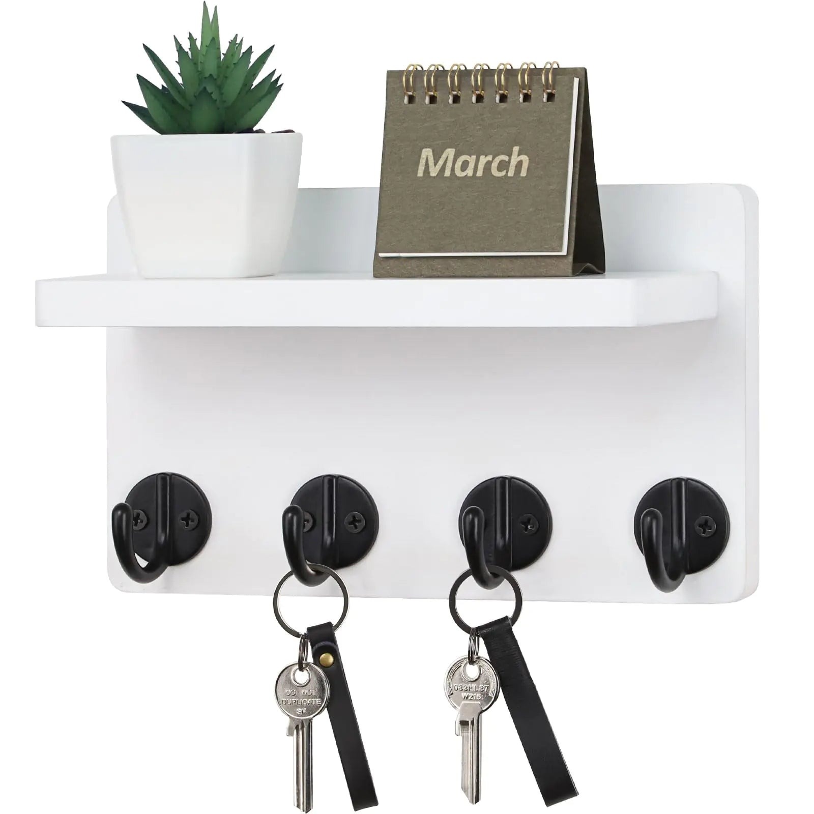 🔑 Key Holder Wall Mount: Compact and stylish with 4 sturdy hooks and a display shelf, perfect for organizing keys, leashes, handbags, and more. Keep your essentials organized and easy to access. Ideal for entryways, kitchens, and living rooms.